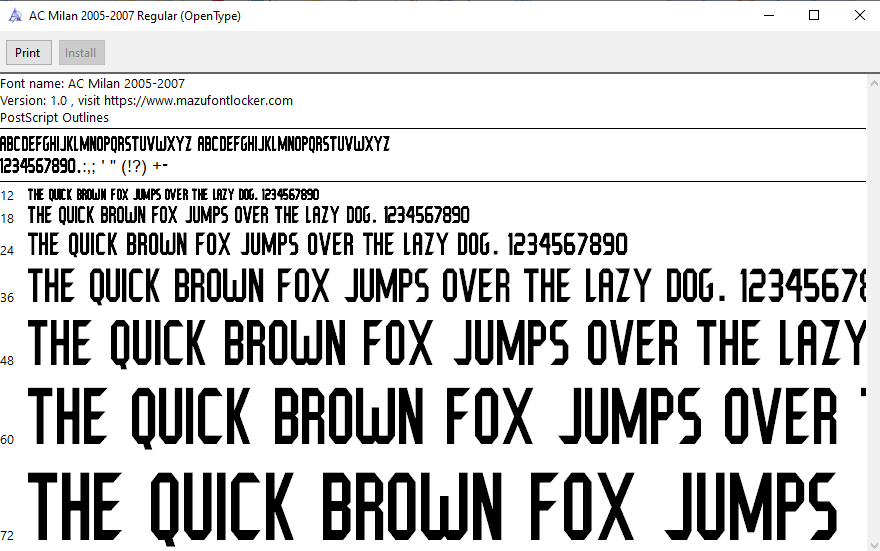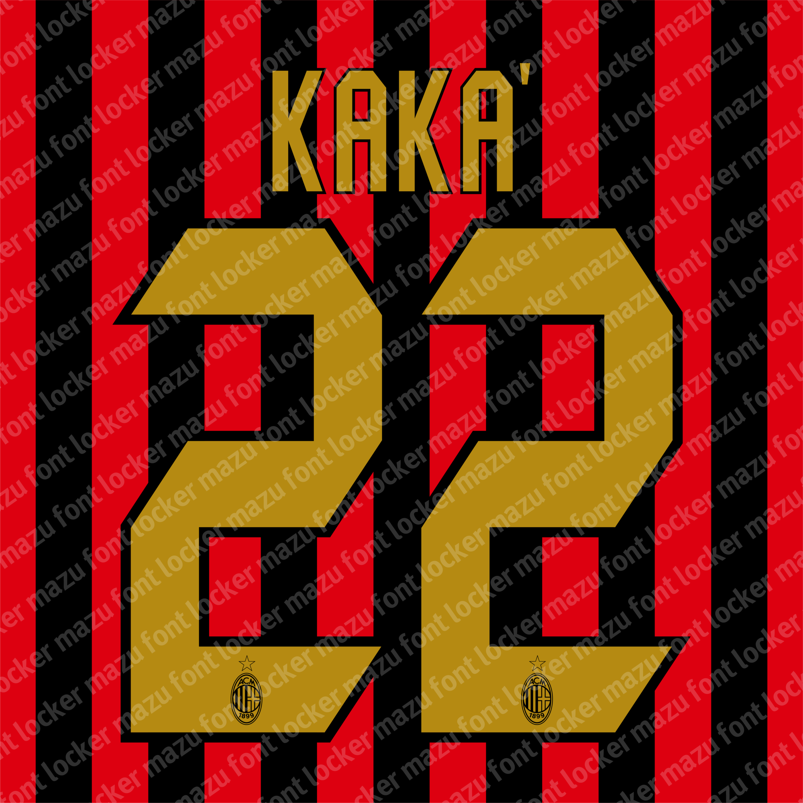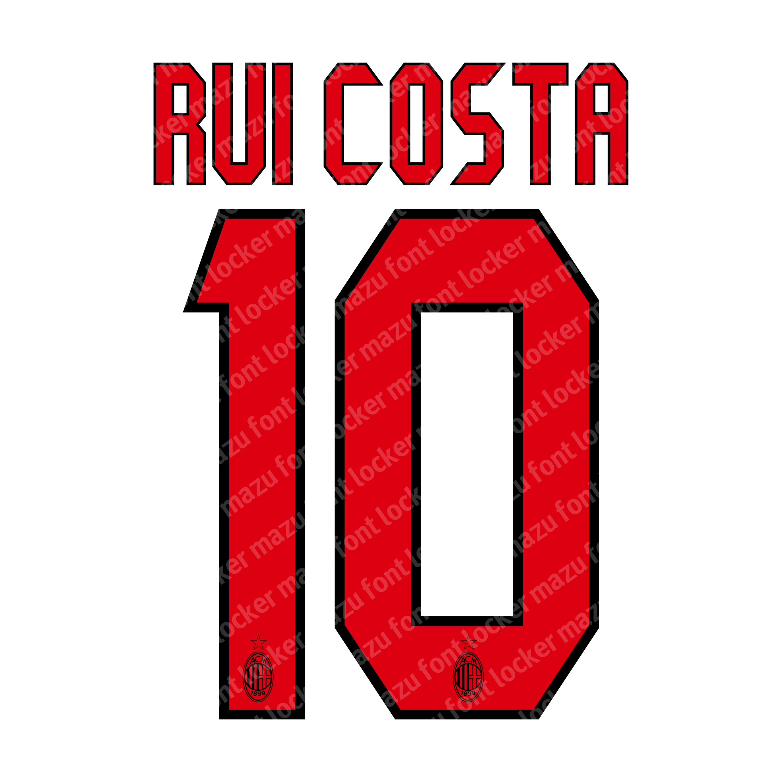 AC Milan 2005-2007 font, names and numbers, fully editable VECTOR file for customisation.