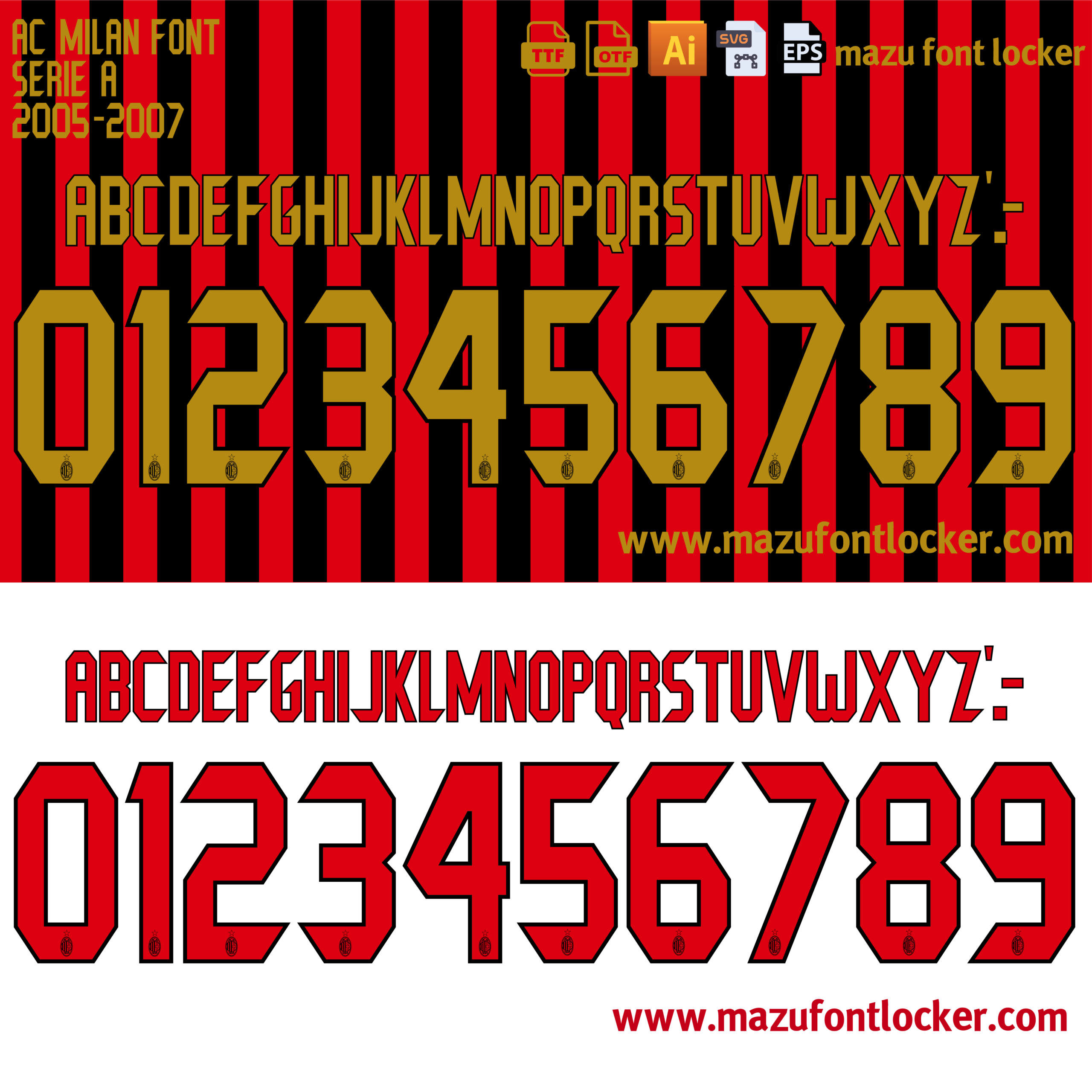 AC Milan 2005-2007 Home & Away Font Vector (Digital Download)