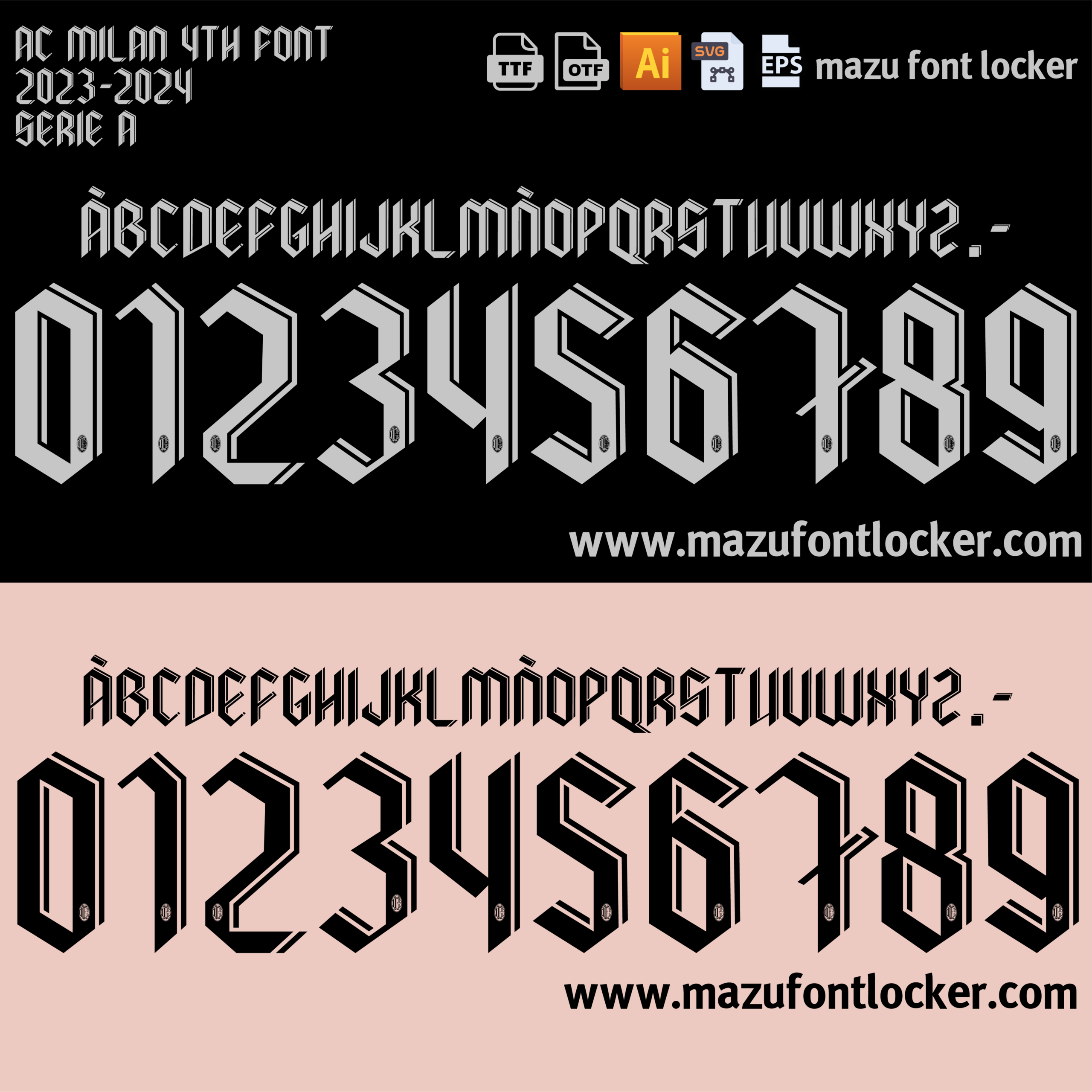 AC Milan 4th 2023-2024 font, names and numbers, fully editable VECTOR file for customisation.