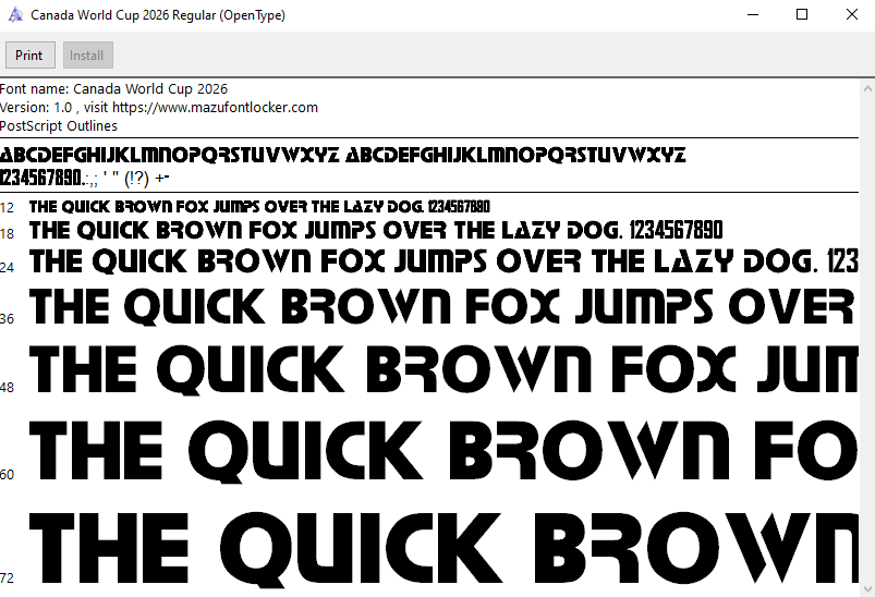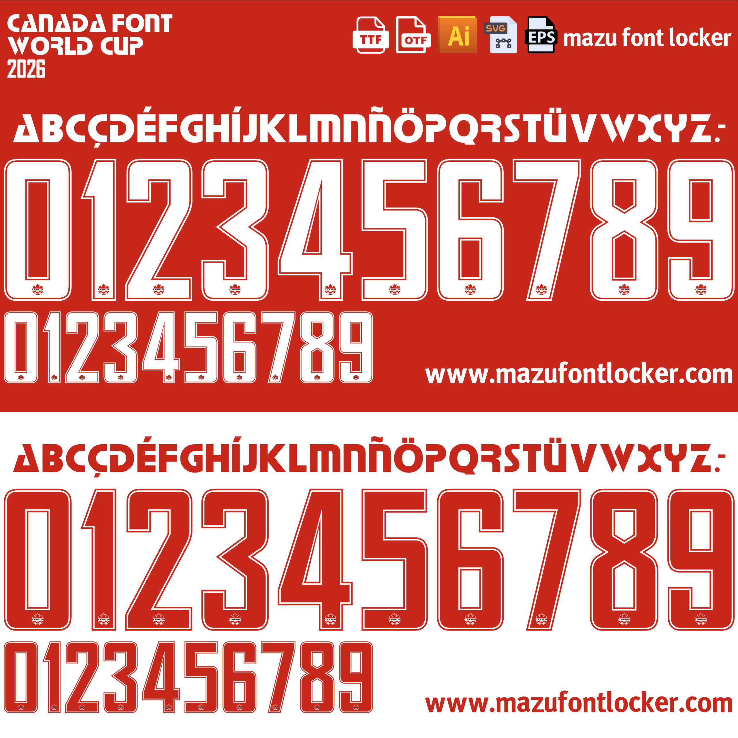 Canada World Cup 2026 font, names and numbers, fully editable VECTOR file for customisation.