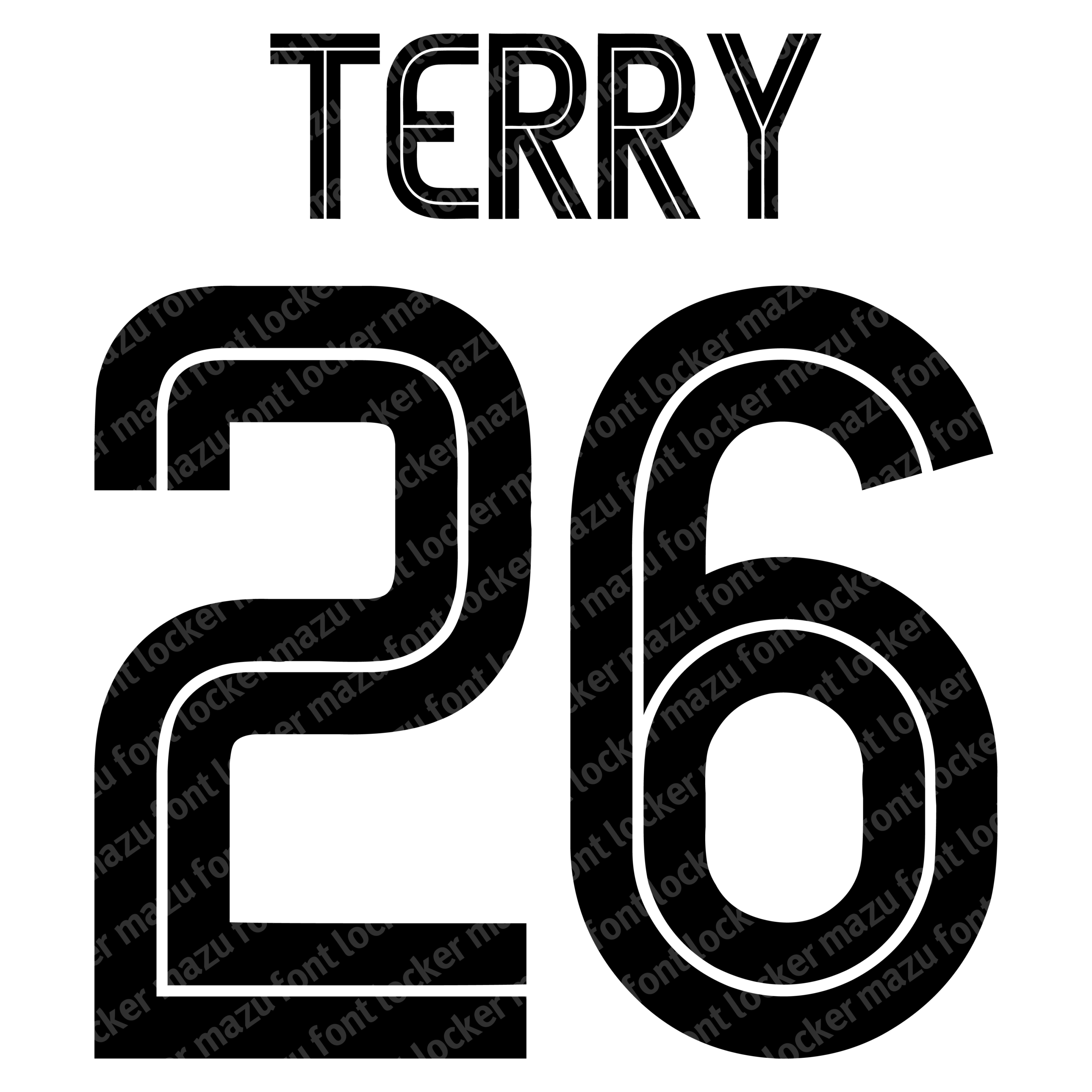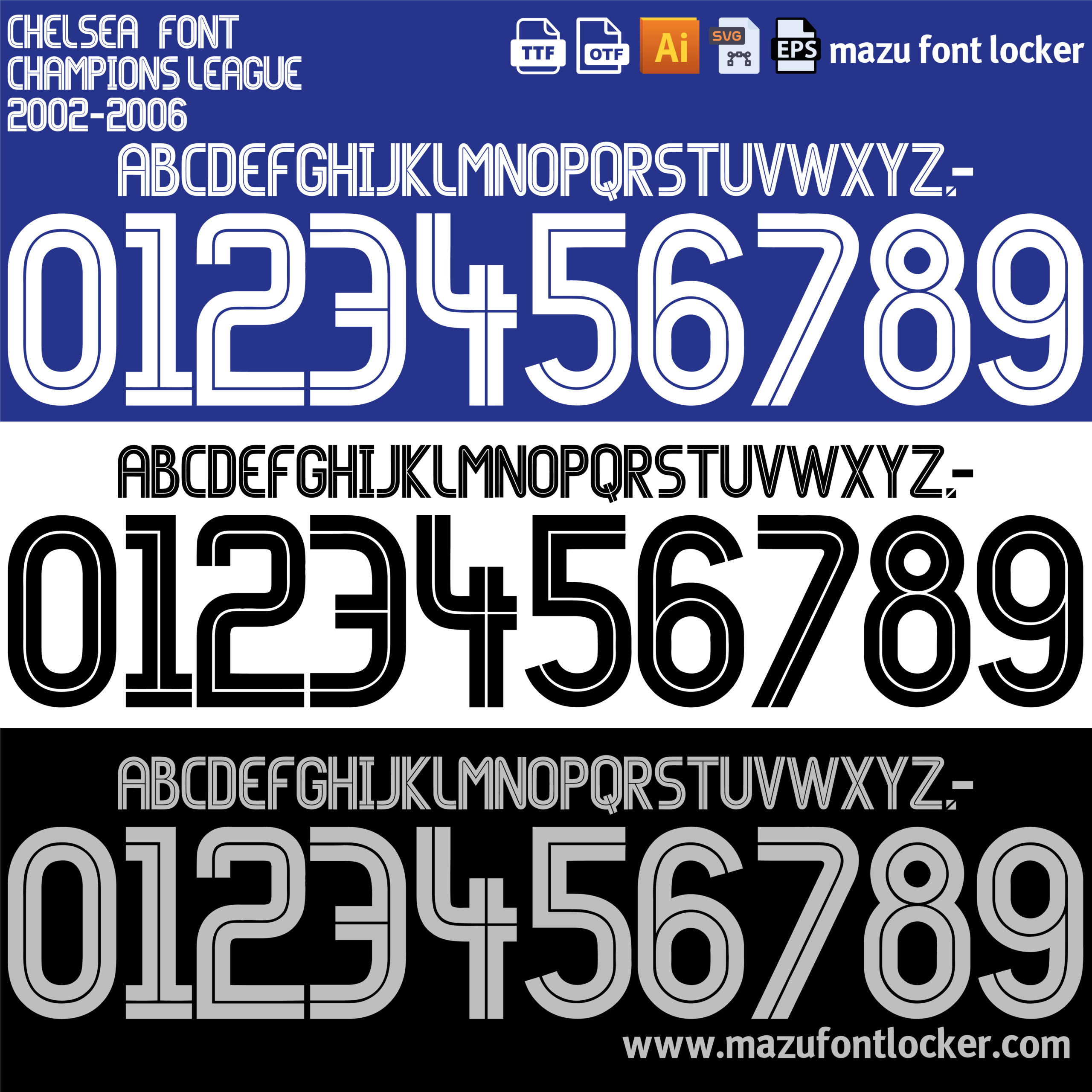 Chelsea Champions League 2002-2006 font, names and numbers, fully editable VECTOR file for customisation.