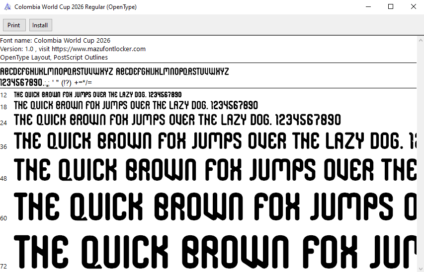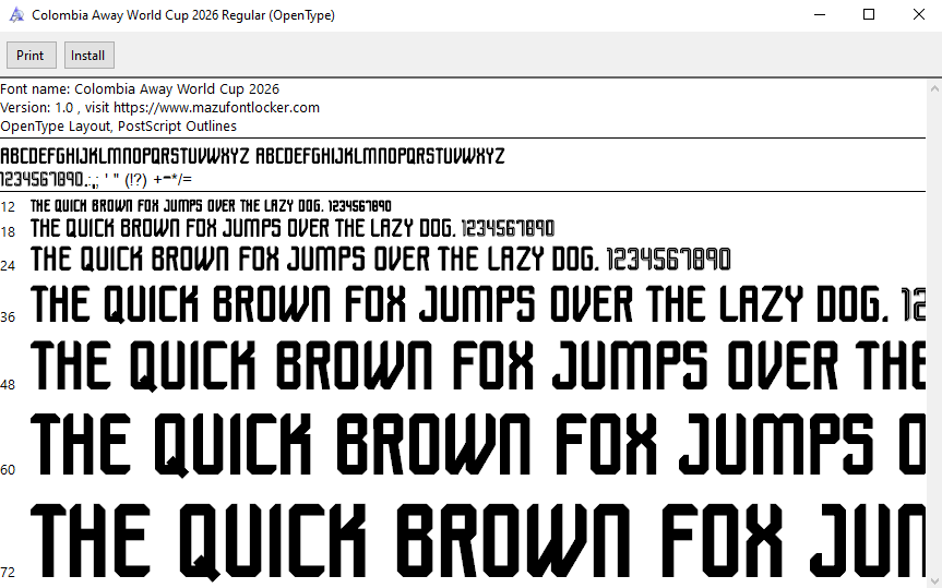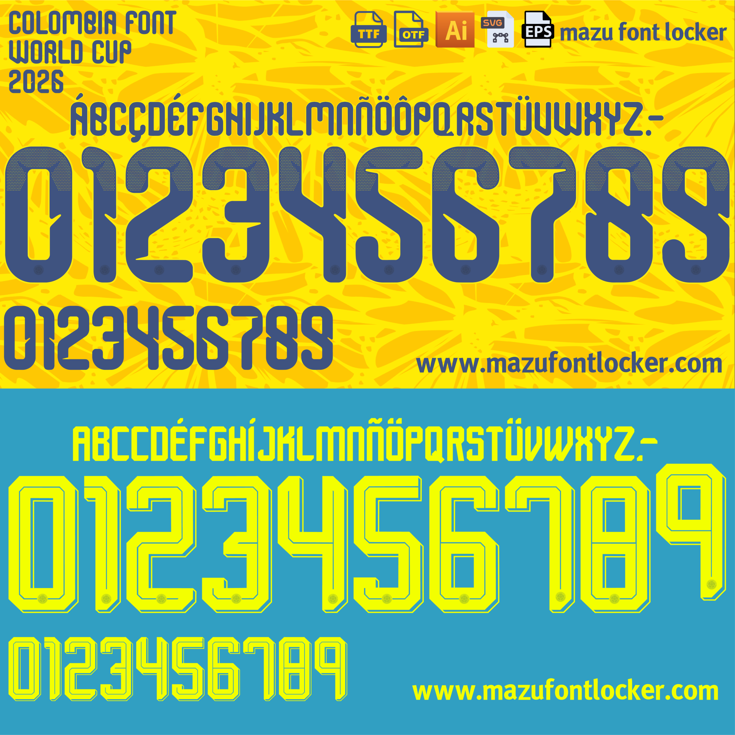 Colombia World Cup 2026 font, names and numbers, fully editable VECTOR file for customisation.