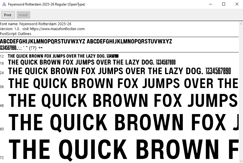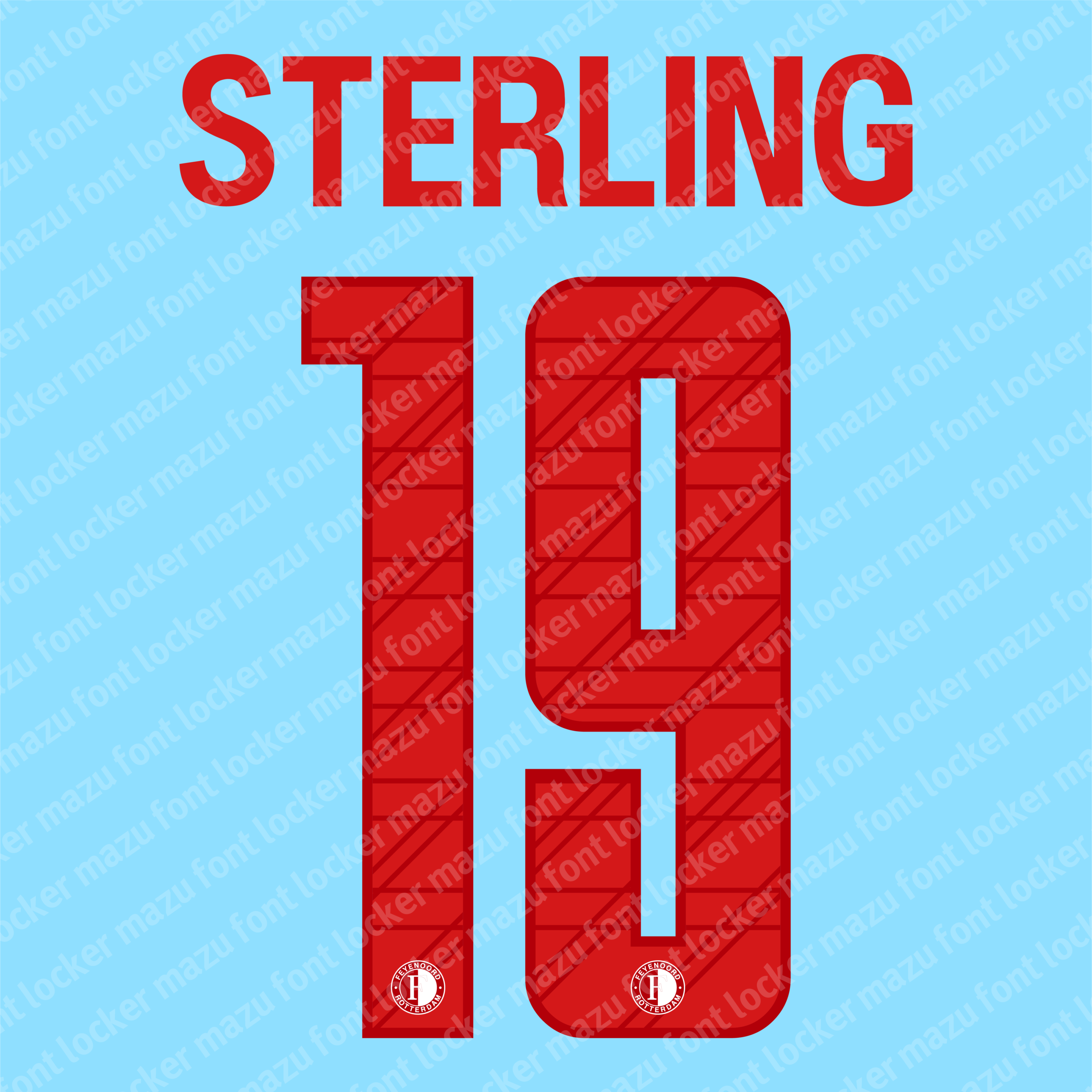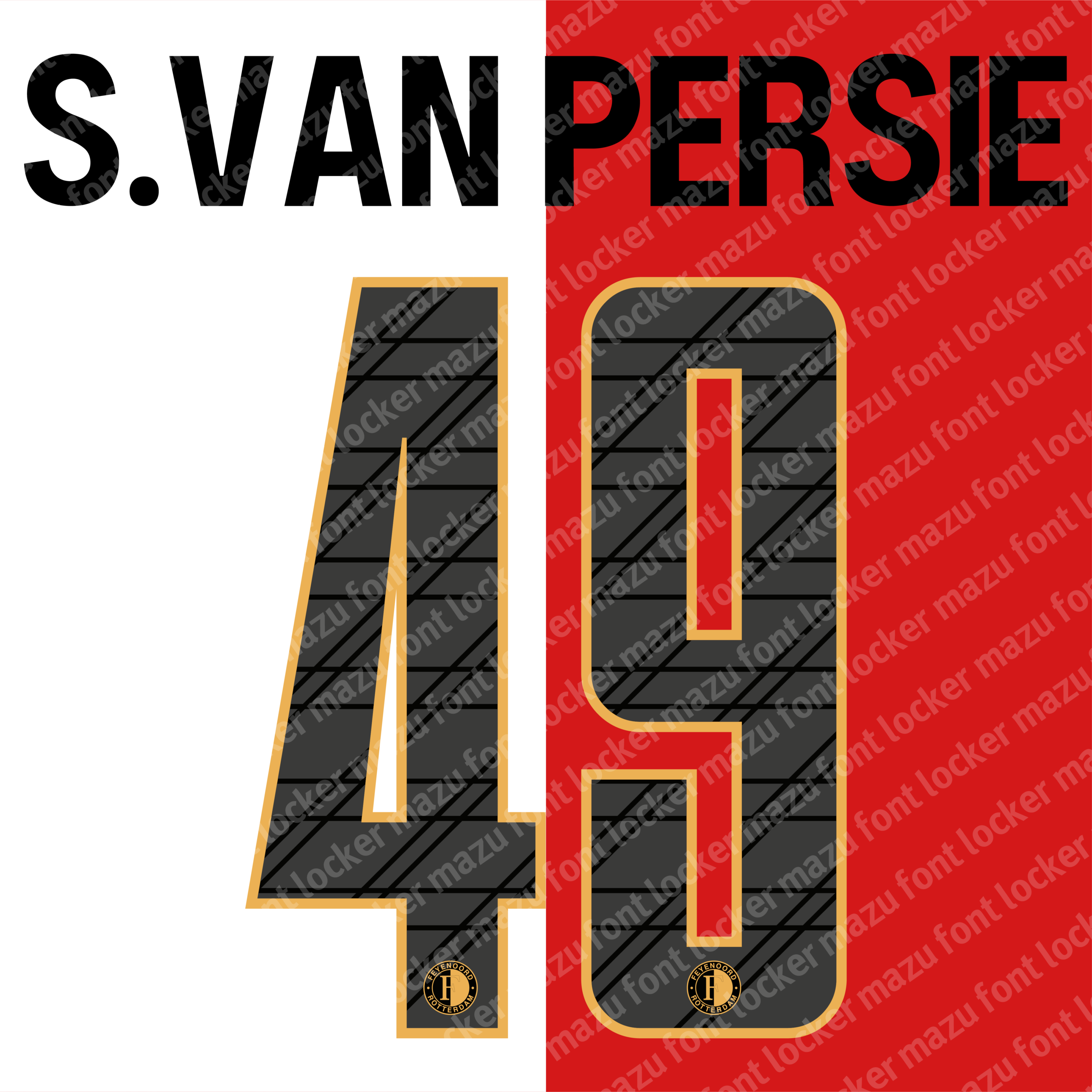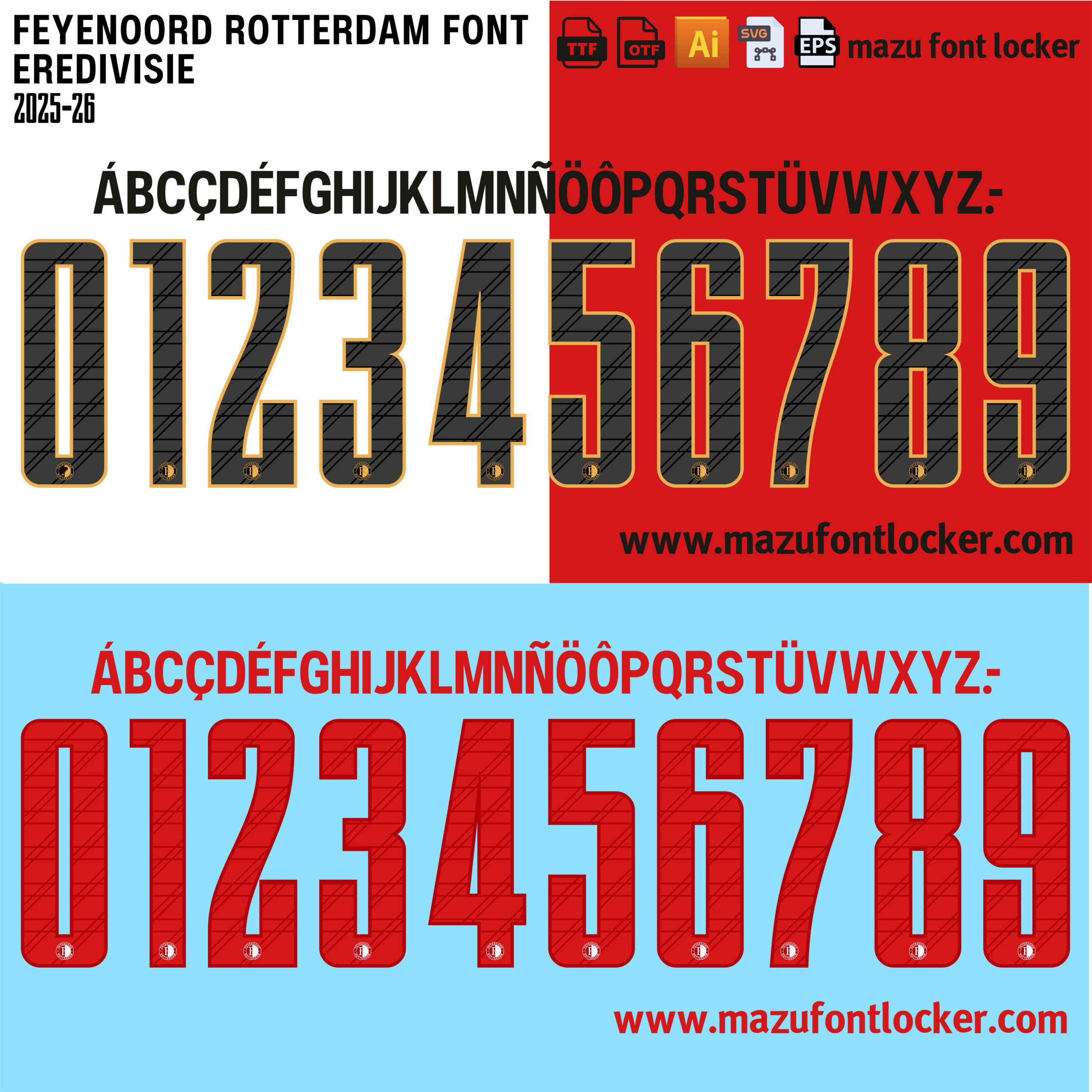 Feyenoord Rotterdam 2025-26 font, names and numbers, fully editable VECTOR file for customisation.