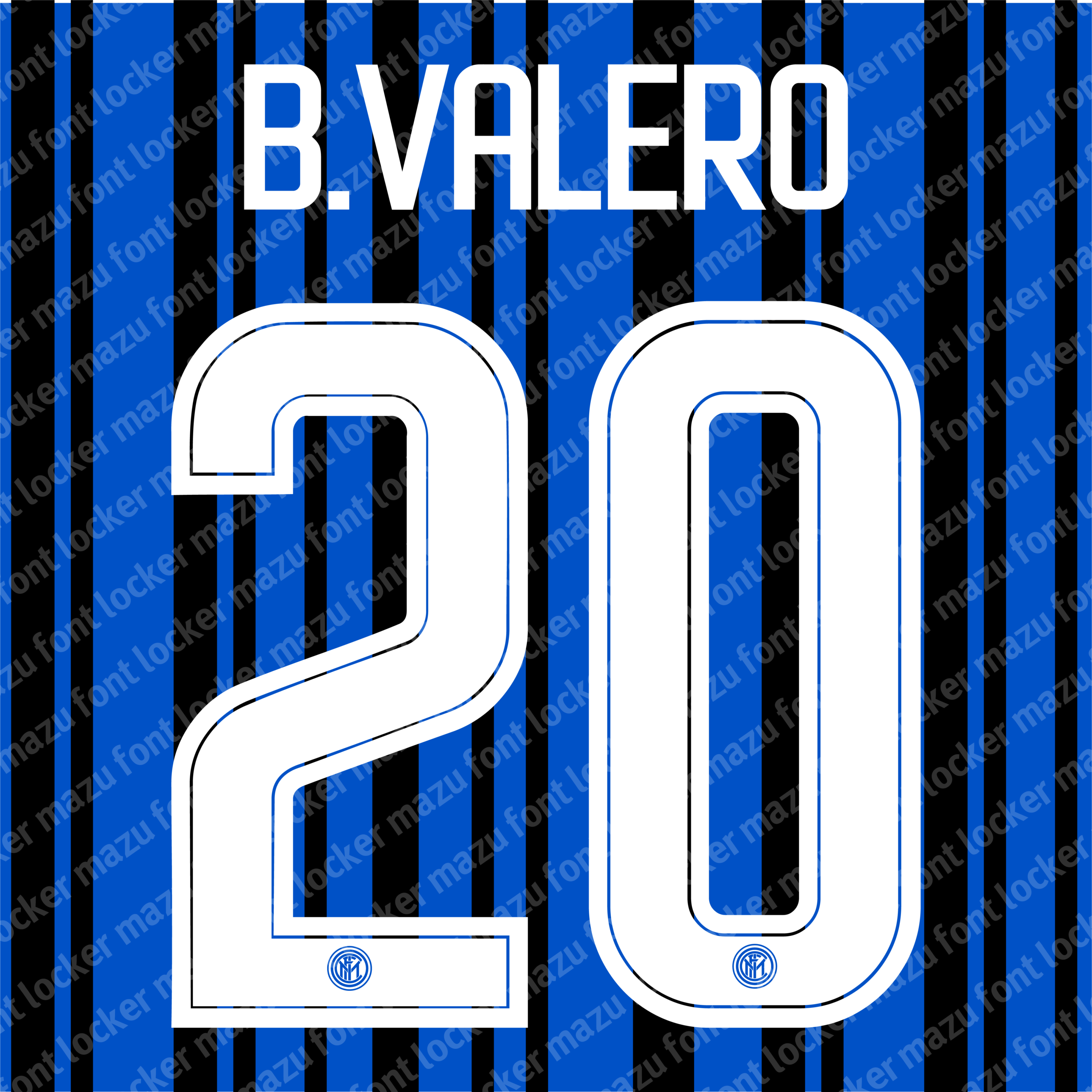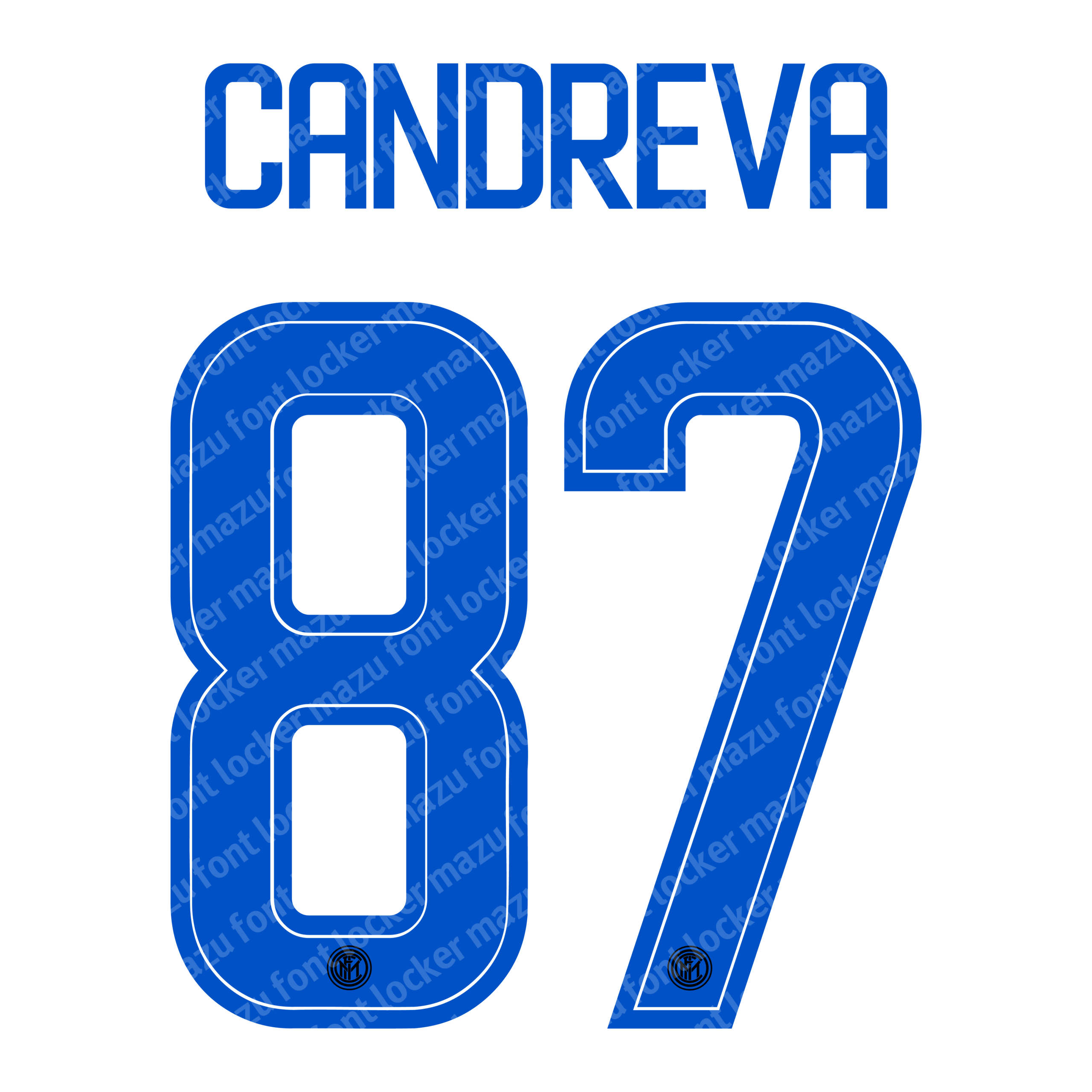 Inter Milan 2017-18 font, names and numbers, fully editable VECTOR file for customisation.