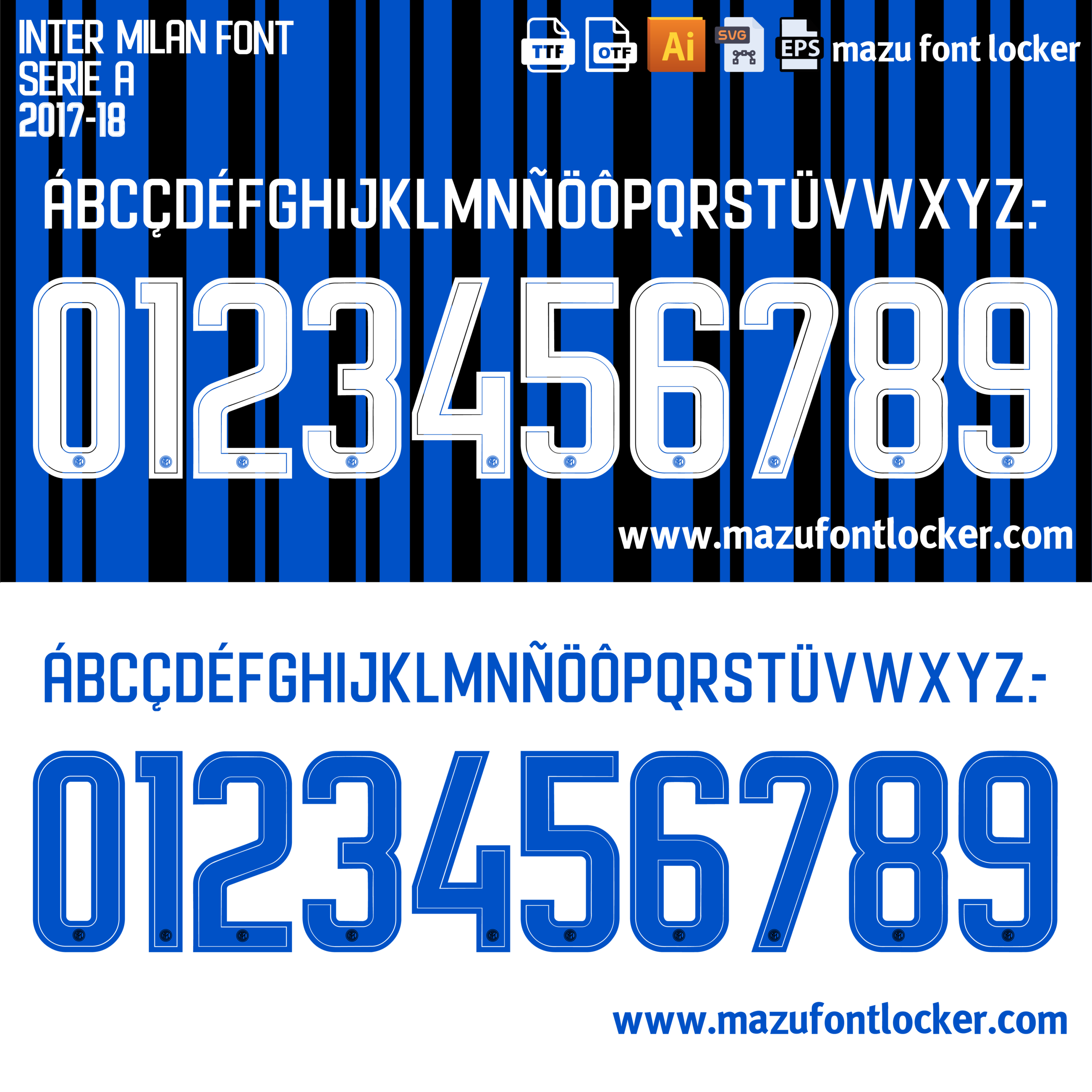 Inter Milan 2017-18 Home & Away Font Vector (Digital Download)