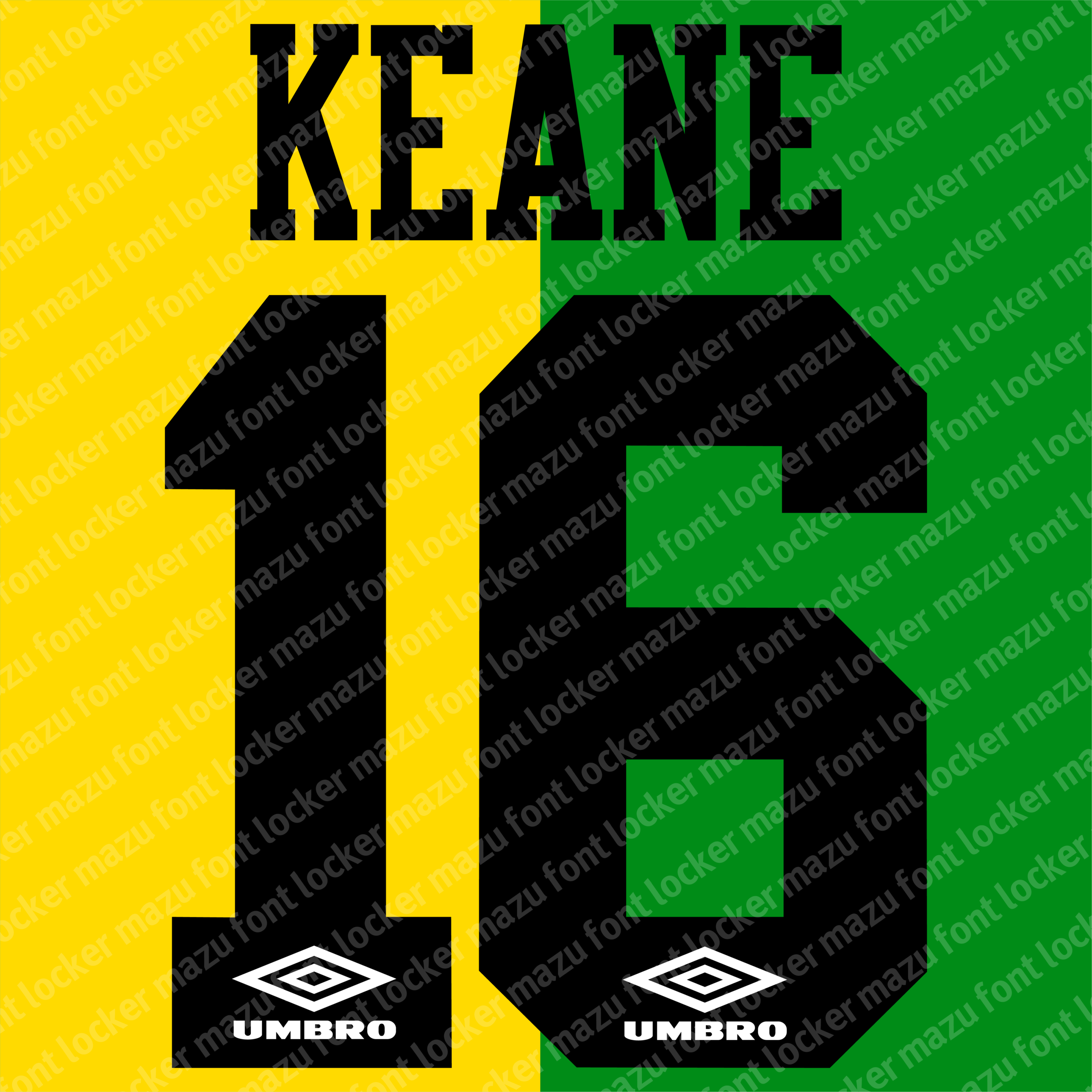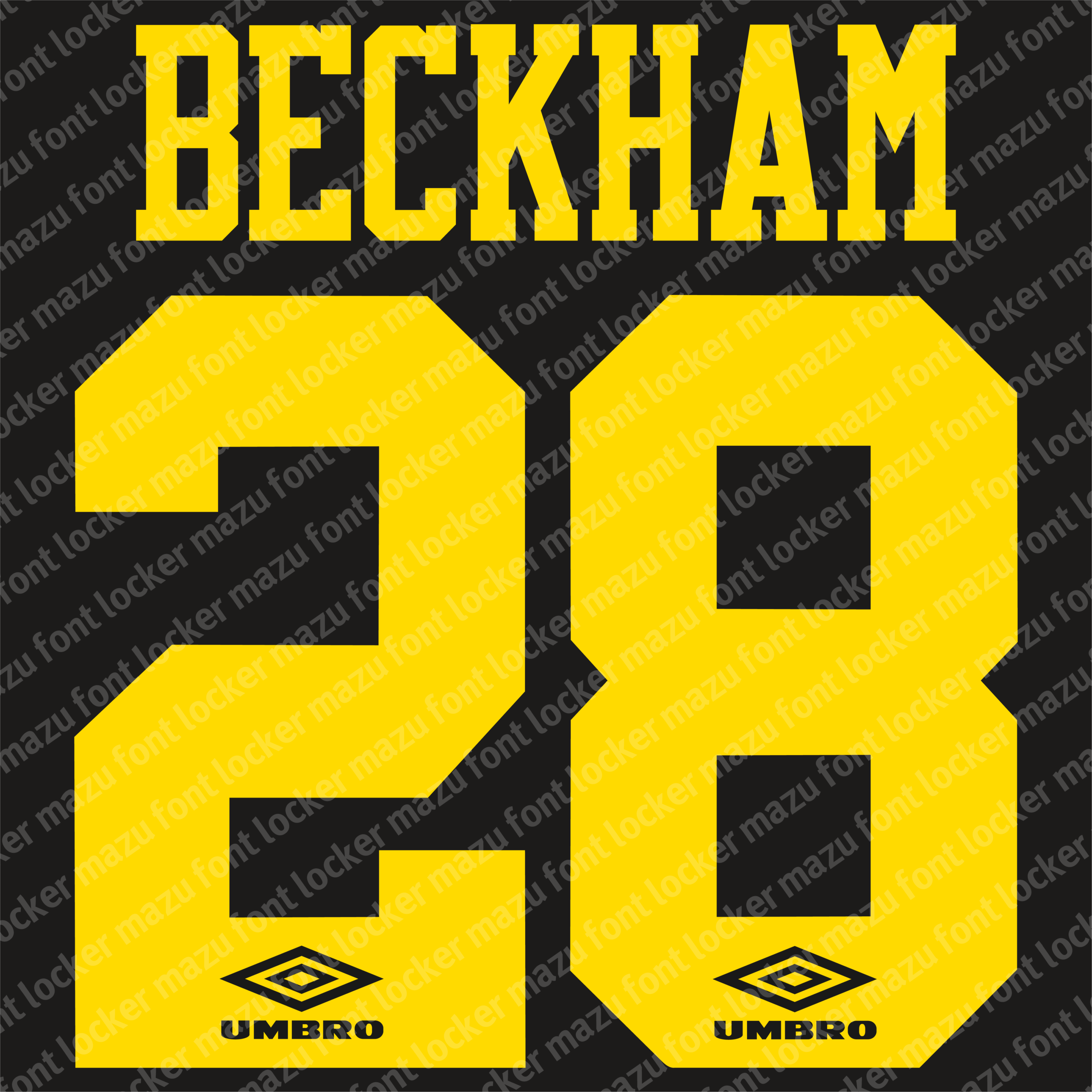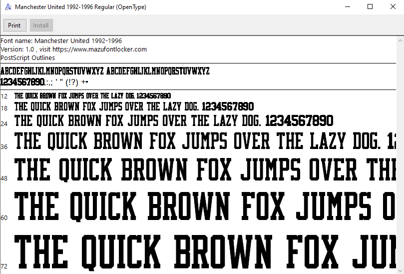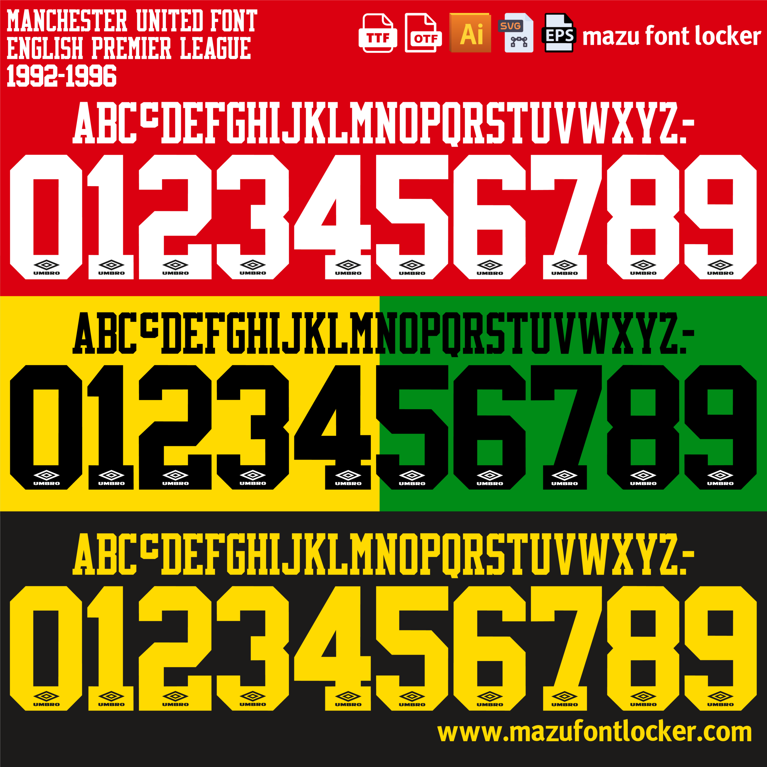 Manchester United 1992-1996 font, names and numbers, fully editable VECTOR file for customisation.