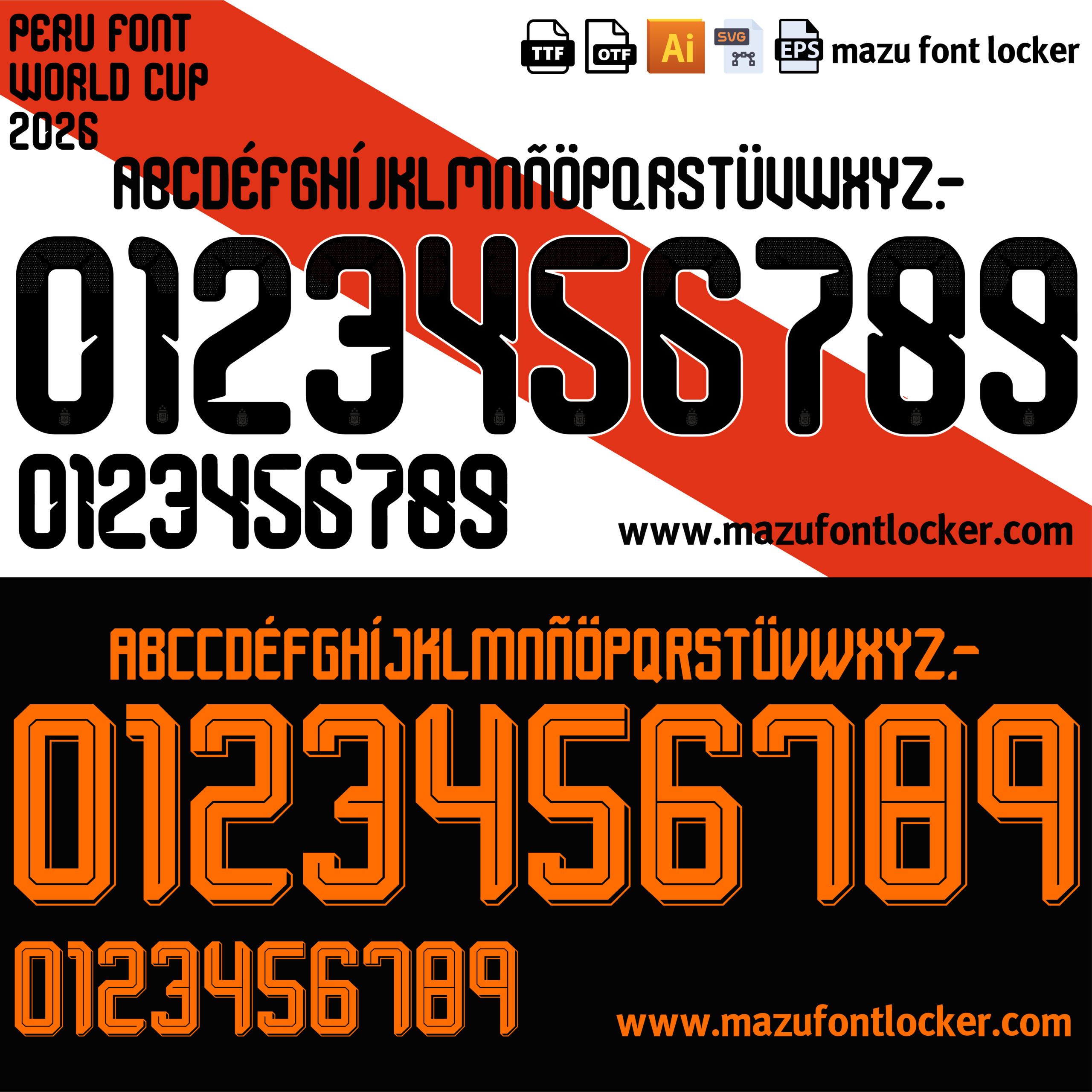 Peru World Cup 2026 font, names and numbers, fully editable VECTOR file for customisation.