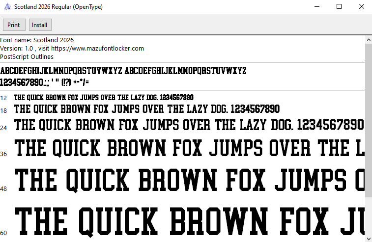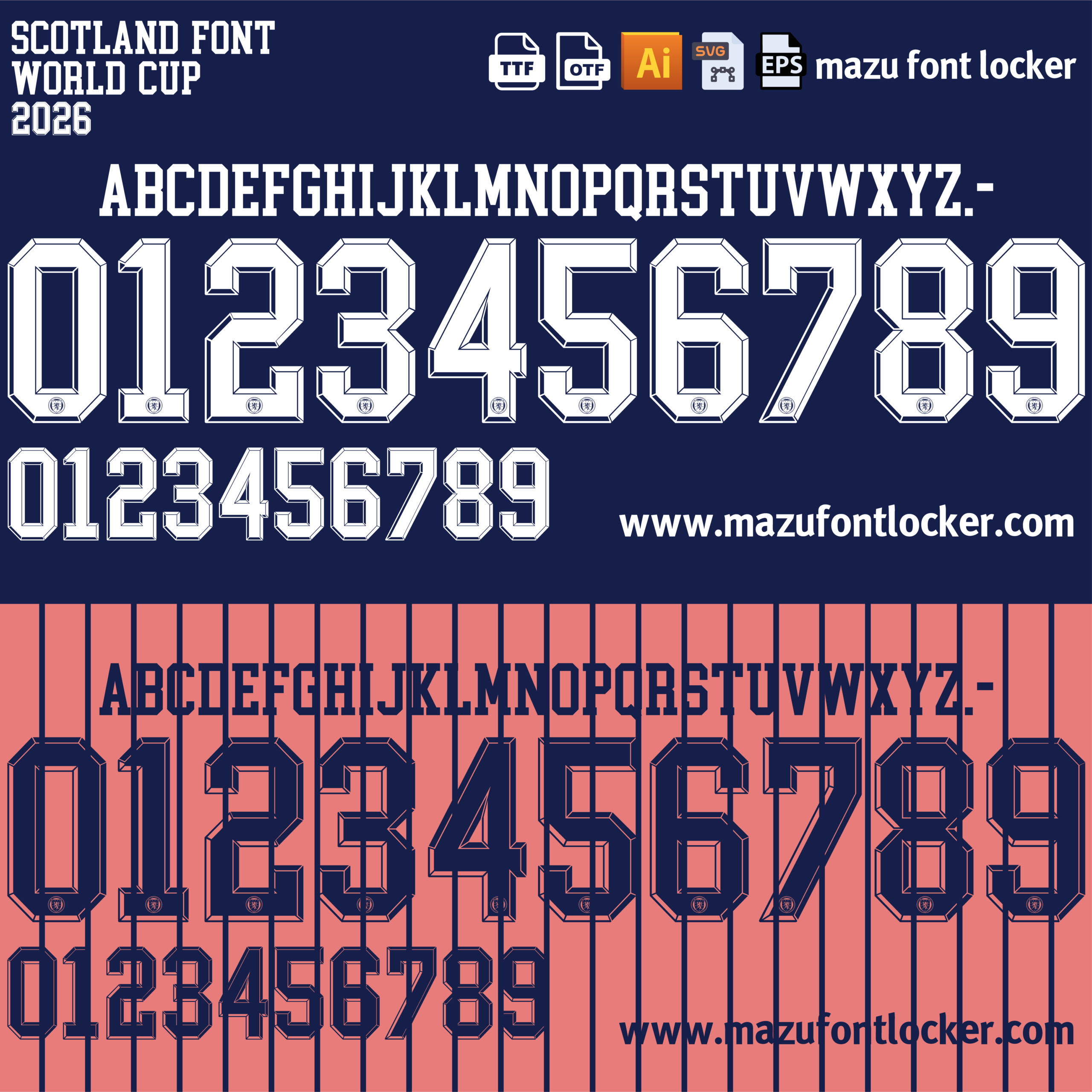 Scotland World Cup 2026 font, names and numbers, fully editable VECTOR file for customisation.