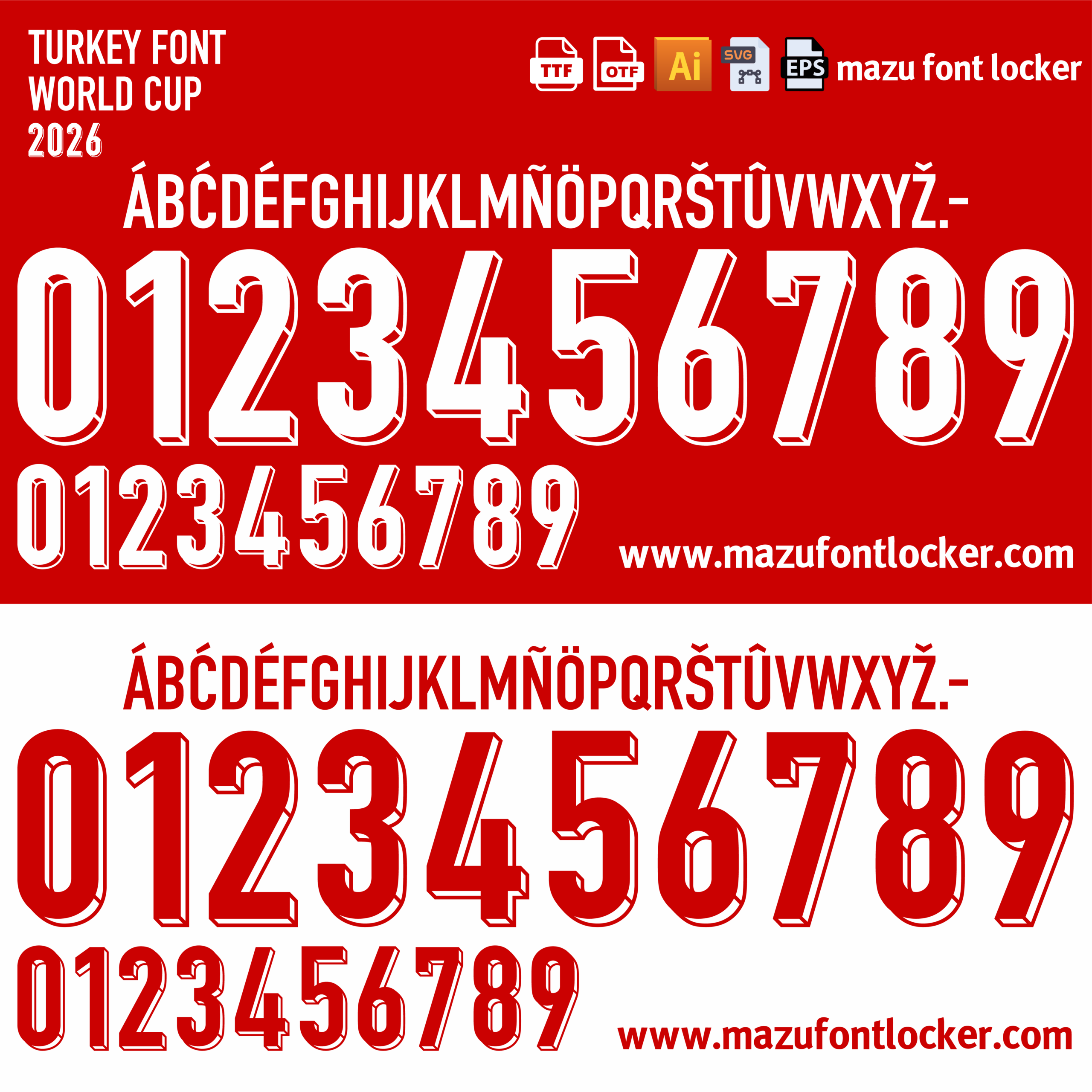 Turkey World Cup 2026 font, names and numbers, fully editable VECTOR file for customisation.